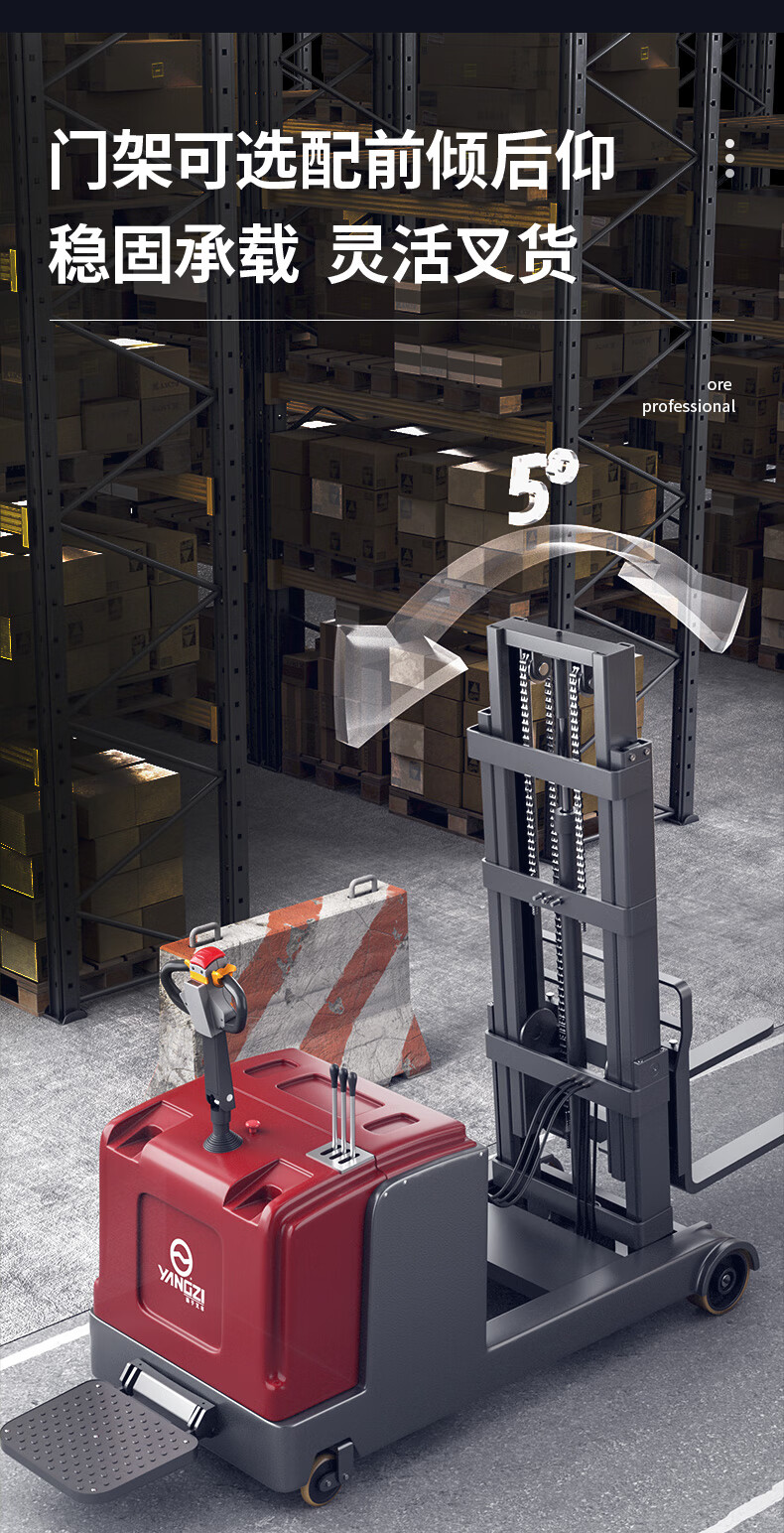 揚子叉車CQD-J,轉彎半徑1900mm,狹窄通道輕松通過,門架可選配前傾后仰,穩固承載靈活叉貨。