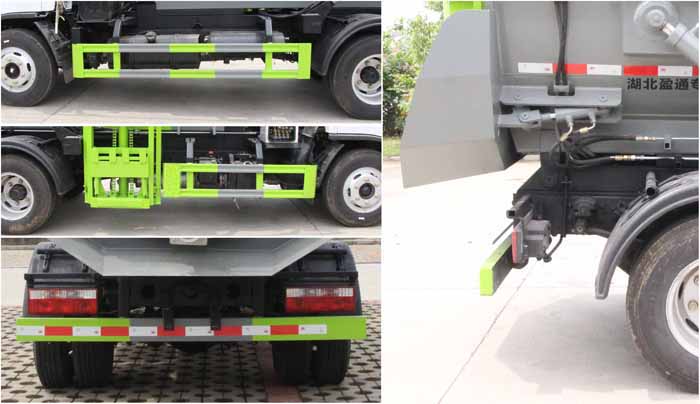 東風餐廚垃圾車,藍牌餐廚垃圾車,廚后垃圾車,餐廚掛桶式垃圾車,多利卡自裝卸垃圾車,該車用于餐廚垃圾收集清運,主要專用裝置為垃圾收集箱和提升機構.側、后防護材料均為:Q235碳鋼,側防護采用螺栓連接,后防護采用焊接連接,后部防護截面尺寸(mm):120×50,后部防護離地高度(mm):430.ABS型號/廠家:ABS/ASR-12V-4S/4M/襄陽東風隆誠機械有限責任公司,僅采用底盤3308mm軸距改裝.選裝側面樣式. |